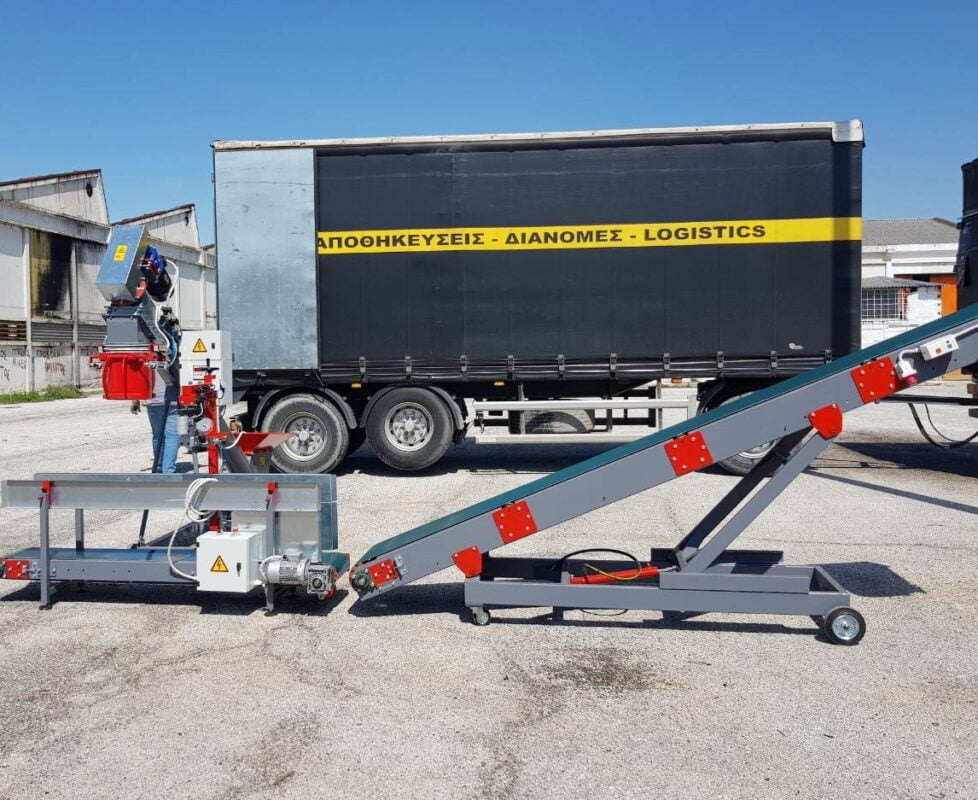 - Ενσάκιση εξειδικευμένων ή ευπαθών προϊόντων ( βιοστερεά, κόμποστ, χώμα αλλά και pellet) με την αντικατάσταση του κοχλία με ειδική μεταφορική ταινία ολοκληρωμένες με ημιαυτόματη ταινία θερμοκόλλησης.