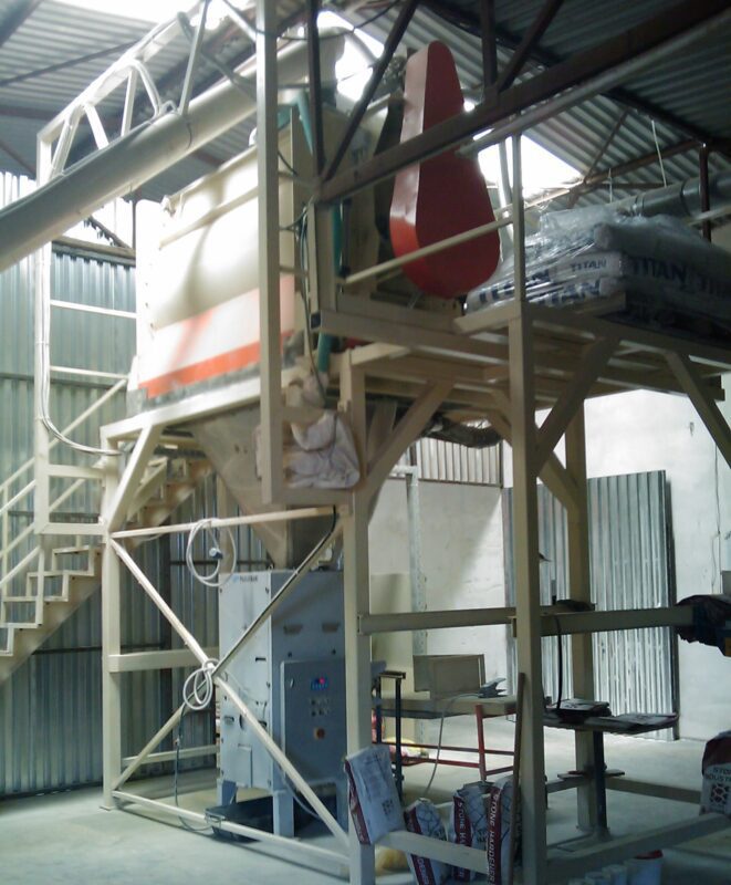 The unit is manufactured starting from the storage of the raw materials in aggregate silos, from two to as many materials as required, it continues with their transport, the exact dosing of each material, their homogenization in the mixer and ends with the automatic bagging of the final product.